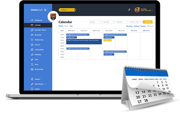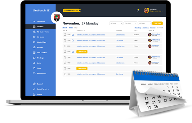The secretary can see all the events created by the participants and be aware of everything that happens in the club. You will also be able to administer club objectives using the calendar. Having created club objectives in the system, they become available to all participants to create events (trainings, matches and meetings) on them. Now not a single club facility will be idle!