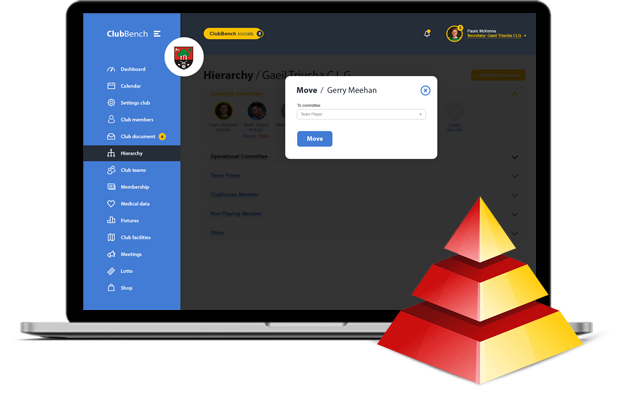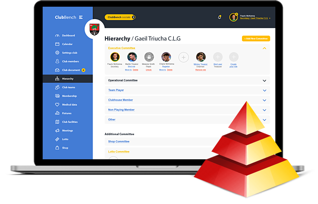 The club secretary can establish any club hierarchy by creating the necessary committees. After that, assign club members to newly formed committees. If members are added or transferred to certain committees, they will be notified. Members assigned to specific committees will be automatically displayed to provide a clear hierarchy for all members and effective communications with the club.