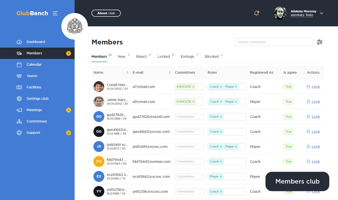Клубного секретаря можно в любой момент поменять и переделать личный кабинет другому человеку, т.е. новому секретарю. Вся наработанная клубная информация, останется в личном кабинете клубе и храниться на наших серверах. Поэтому не стоит беспокоиться с заменой клубного секретаря, новый секретарь без проблем продолжит работу другого секретаря.
