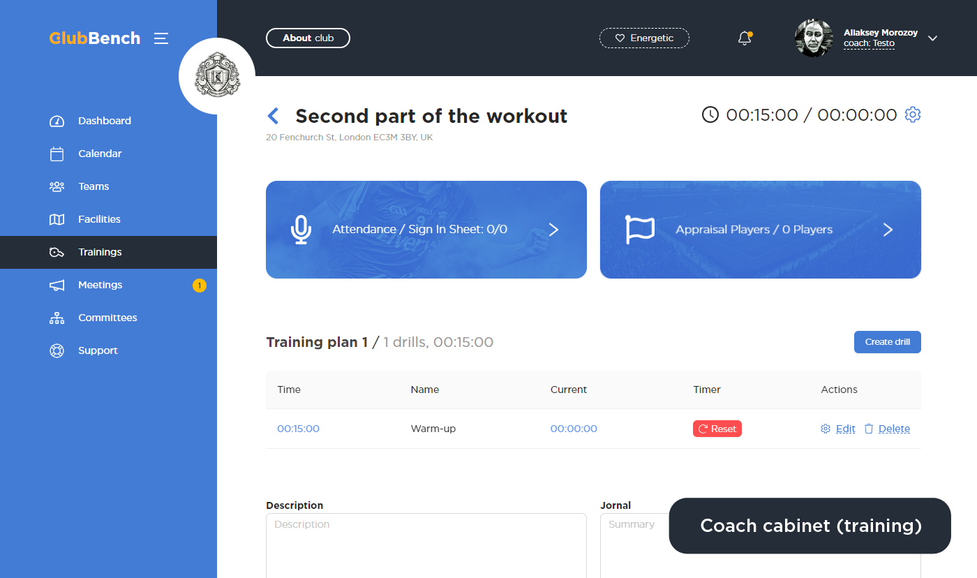 – Личный кабинет тренера и игрока